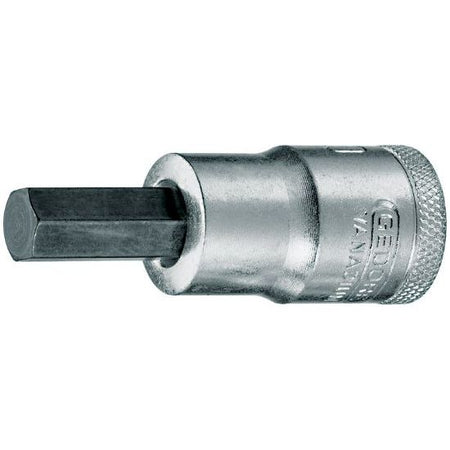 The Allenkey socket 1/2dr IN19 Gedore is a reliable tool for loosening and tightening hexagon head screws. Its manually operated design features a knurled base for easy grip and precision. The bits and sockets are crafted from durable Chrome Vanadium steel, ensuring long-lasting use.