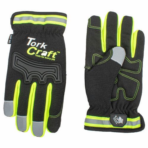 Protect your hands with our Anti Cut Glove, designed to protect against cuts and lacerations from sharp objects. With soft TPR rubber on the knuckles, you'll also be protected from bumps. The touch screen feature on the thumb and index fingers allows for use on electronic devices, while the reflective material on fingertips and cuffs adds an extra layer of safety. Made of knit synthetic leather, these gloves are a must-have PPE.