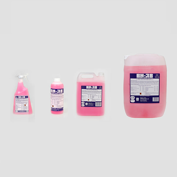 BH-38 is a heavy duty, industrial and commercial, butyl based detergent, formulated to easily and economically clean a large variety of industrial and domestic areas.