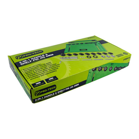 The 2-in-1 handle and shelf pin jig is designed to be intuitive for beginners to use, but robust enough for professionals. All you need is a drill and the supplied drill bit, and the ability to set the jig to match your hardware and the position where you want it installed. Durable construction makes the jig tough but light, and drill guides ensure that you will get straight, accurate holes - whether you&re drilling one, a few, or many.