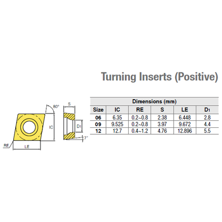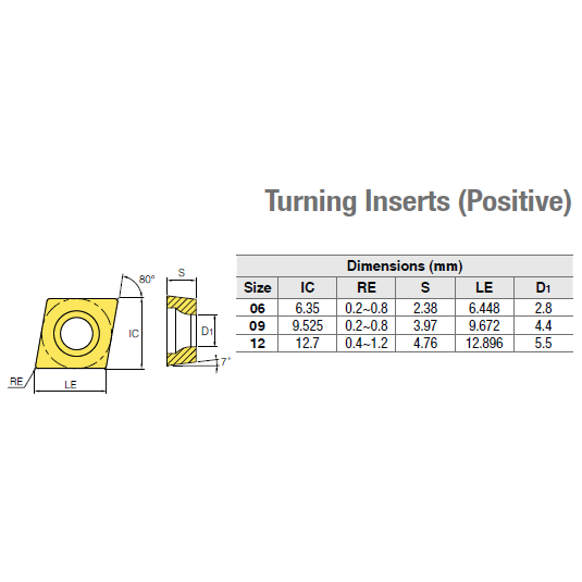 Carbide Turning Insert CCMT09T304-HMP Rhombic 80' Positive