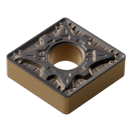 The Carbide Turning Insert CNMG120408-MP features universal chip control that enhances productivity by maintaining stable chip formation across diverse machining tasks. Its design reduces cutting forces, ensuring stable and extended tool life even at high speeds and feeds. Balanced grade and chip breaker optimize performance for a wide range of applications, including forged steel and bearing steel used in automotive components. This insert supports higher removal rates and faster cutting conditions, enabling efficient and reliable production with adaptable use across varying workpiece materials.