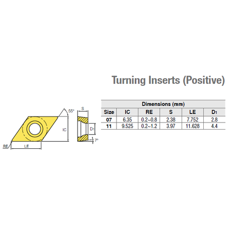Carbide Turning Insert DCMT11T304-MP Rhombic 55' Positive