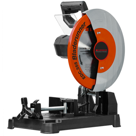 The Euroboor EDC.355 “Bladerunner” metal dry cut-off saw is ideal for cutting metal profiles, pipes and sheet material. This robust machine has an adjustable cutting angle from 0° to 45° and a molded aluminum base with adjustable angle indication. In addition, the base has 3 attachment points to fix the machine to your workbench. The EDC.355 is powered by an extremely powerful 2480 W motor with built-in soft start functionality. With 1450 rpm, this machine is suitable for sawing all types of metals.