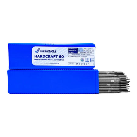 Thermamax Hardcraft Electrodes in 5kg packs are engineered for durable hard surfacing of steel parts. Featuring chrome carbide weld deposits, these electrodes deliver exceptional resistance to abrasion and medium impact. The Hardcraft 55 offers a weld hardness around 55 HRC, while the Hardcraft 60 reaches approximately 60 HRC, ensuring tailored performance for demanding applications. Their rutile flux coating provides superior protection against rust, mill scale, dirt, and oil, enhancing weld quality even on less-than-ideal surfaces. Ideal for professionals seeking reliable, long-lasting wear resistance in industrial environments.