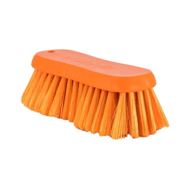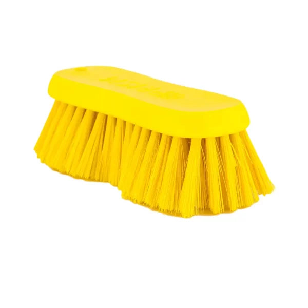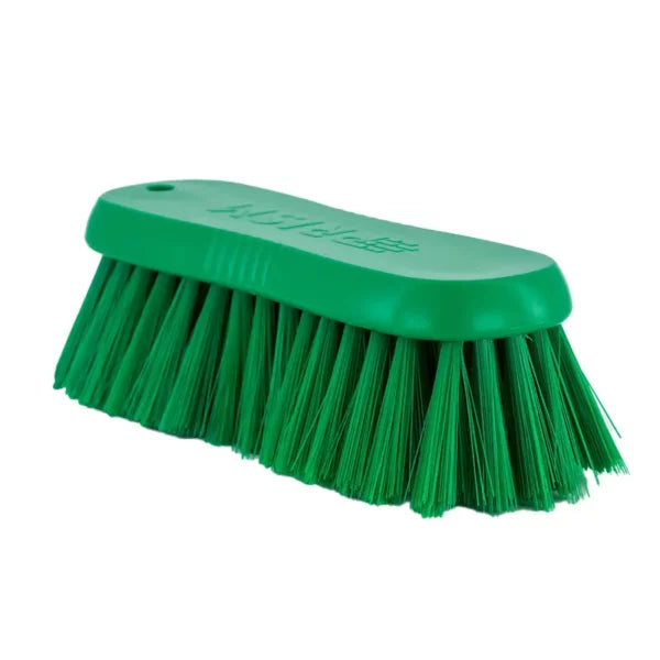 The Hygiene Scrub Block Brush features a 175mm hard or soft bristle head designed for effective cleaning in hygiene-sensitive environments. HACCP compliant and color-coded for use in designated areas, it ensures cross-contamination prevention. Its angled design allows thorough cleaning of cutting boards, work surfaces, and hard-to-reach spots, making it an essential tool for maintaining strict sanitation standards.
