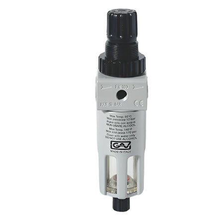 The Italian-made FR Compressed Filter Regulator provides precise air flow control, filtering air to 10 microns and regulating up to 10 Bar. With a maximum inlet pressure of 12 Bar and a working pressure of 1800 Nl/min at 6 bar, this tool is essential for jettisoning and protecting equipment.