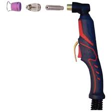 Lightweight and versatile torch that is suitable for both handheld and mechanized cutting applications. Includes torch body, electrode, nozzle, shield cup and consumables. Torch body holds all the internal components together. Comfortable grip and control during cutting operations. Electrode is responsible for creating and maintaining the electric arc that generates the plasma. Nozzle helps to shape and focus the plasma arc for precise cutting. It also acts as a shield to protect the electrode and other internal parts from molten metal and debris. Shield cup, swirl ring or diffuser surrounds the nozzle and helps to create a swirling gas flow, improving the stability and quality of the plasma arc.