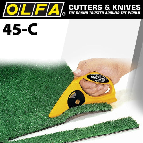 Good For: The unique design makes the 45-C ideal for cutting things like poly resin sheets, roofing felt, foundation membranes, landscaping mesh, vinyl, carpet and linoleum. Applications where someone needs to protect the product or materials underneath, this cutter is designed so that the blade doesn&t come in contact with product/materials therefore preventing damage. Furniture manufacturers and electronics manufacturers like this product as when cutting shrink-wrap off pallets, their products dont get damaged.