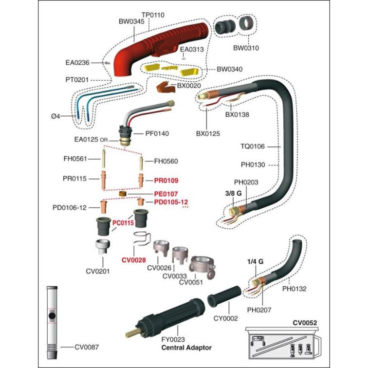 Full spares list for the A81 cutting torch