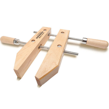 Its jaws are made from seasoned hard maple and can be adjusted for holding materials of different widths and shapes.