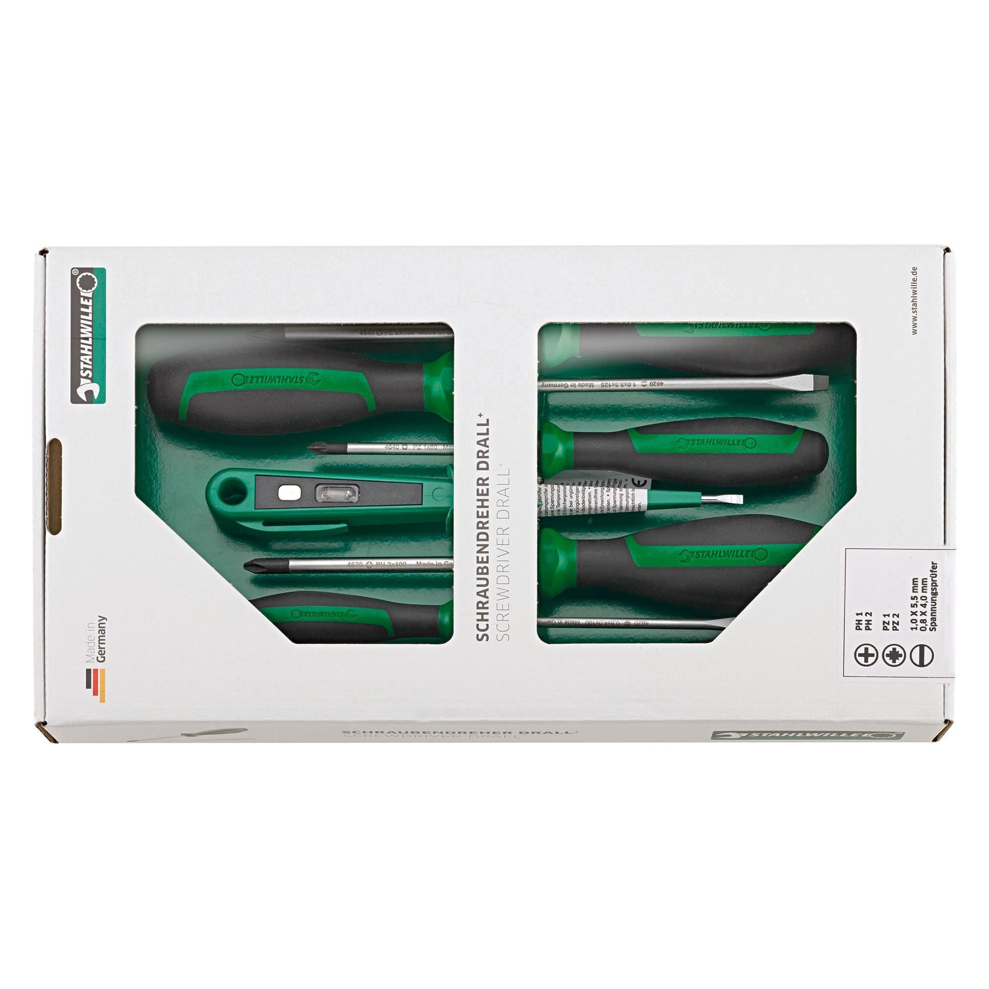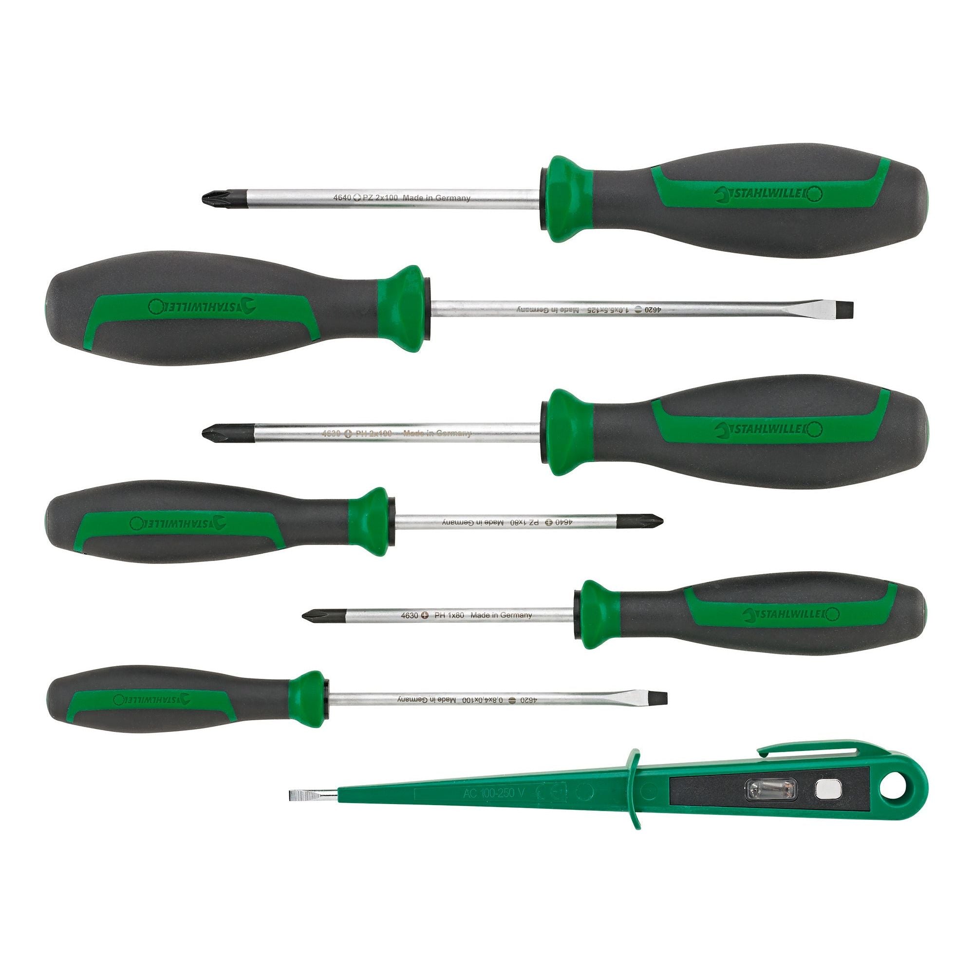 Efficiently tackle any installation or renovation work with the 7pc Stahlwille Screwdriver Set. Made in Germany, it features an ergonomic 2K handle and voltage tester, suitable for various screw sizes and types. The multi-component handle provides fatigue-free work, while practical labels allow for quick identification. Increase productivity with the right tool for the job.