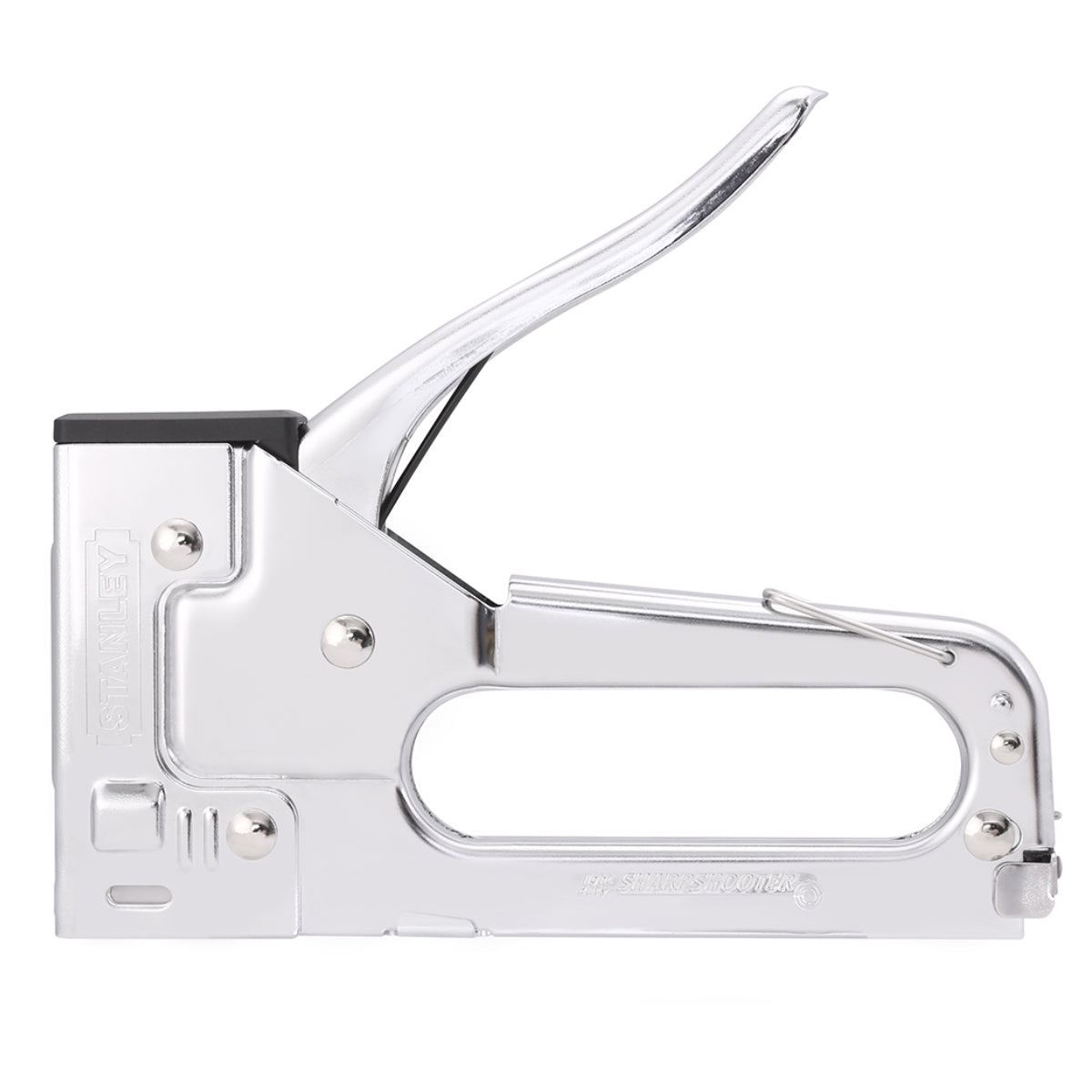 Experience seamless stapling with the Stanley Staple Gun Light Duty 6-TR45. The fastener window provides clear visibility for easy staple reload, while the anti-jam mechanism ensures continuous use and reliable operation. For safe storage and transportation, the handle can be locked down. Staples not included. Uses TRA2 series staples